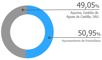 "Aguas de Puertollano es sociedad mercantil de carácter mixto, público y privado, de gestión de los servicios que conforman el denominado ciclo integral del agua, participada mayoritariamente en un 50,95% por el Ayuntamiento de Puertollano, titular de los servicios gestionados por esta sociedad mixta, y en un 49,05% por la mercantil Aquona, Gestión de Aguas de Castilla, SAU."